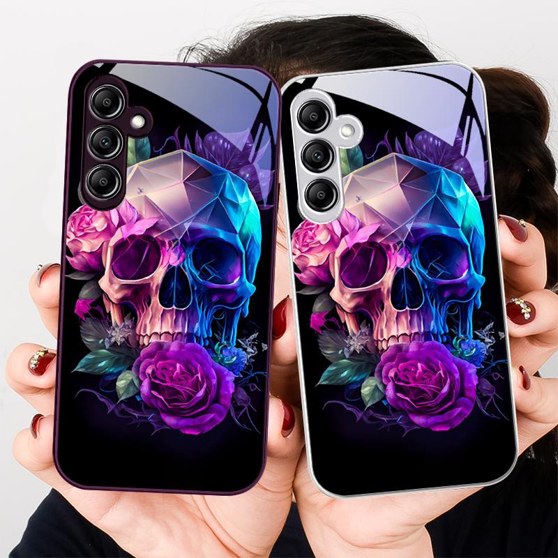Cartoon Roses And Skulls For Samsung Galaxy A01 02 03 Core A04 A14 4G A13 54 34 31 20 25 23 22 5G S21 Ultra S20 Glass Phone Case