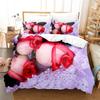Comforter Rose Flower Bedding Set 4Pcs Pink Red 200X230 For Double Bed 3D Bedsheet 230X230 Full Size Thin Fabric