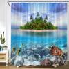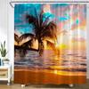 Dusk Sunset Beach Shower Curtains Tropical Ocean Palm Tree Forest Waterfall Nature Scenery Cloth Home Decor Bathroom Curtain Set