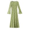 Green Field Slimming French Retro Bodycon Dress - Elegant Ribbed Long Sleeve — tüm dünyaya ücretsiz teslimat ile online ürün satın alın!