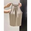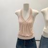 Design-Conscious Pink Pleated Halter Neck V-Neck Open-Back Slim Camisole for Women - New 2026 Summer Style