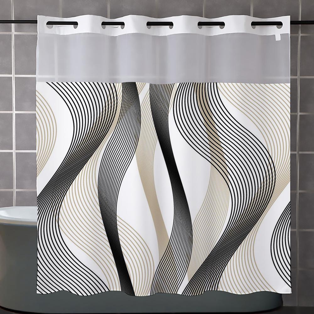 No Hook Geometric pattern Shower Curtain With Snap-in Fabric Liner, Sheer Top Window, Waterproof Double Layer Bathtub curtain — tüm dünyaya ücretsiz teslimat ile online ürün satın alın!