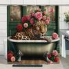 Jungle Wildlife Shower Curtain Tiger Plant Tropical Palm Leaf Polyester Fabric Shower Curtain Bathroom Decoration With Hooks S