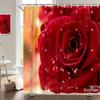 Valentine's Day Shower Curtain, Rose Flower Heart Romantic Plant Love Lipstick Polyester Printed Fabric Bathroom Decoration