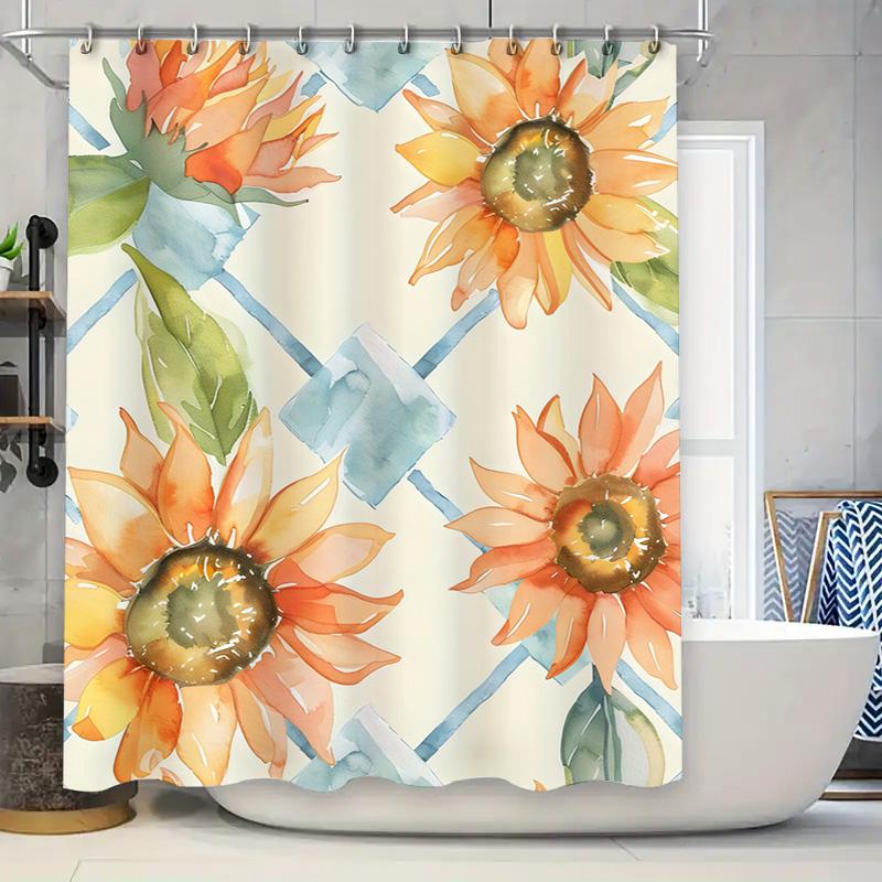 Vibrant Sunflower Shower Curtain Waterproof Home Decor for Bathroom Peach Orange Blue Geometric Design Modern Artistic Print Fab