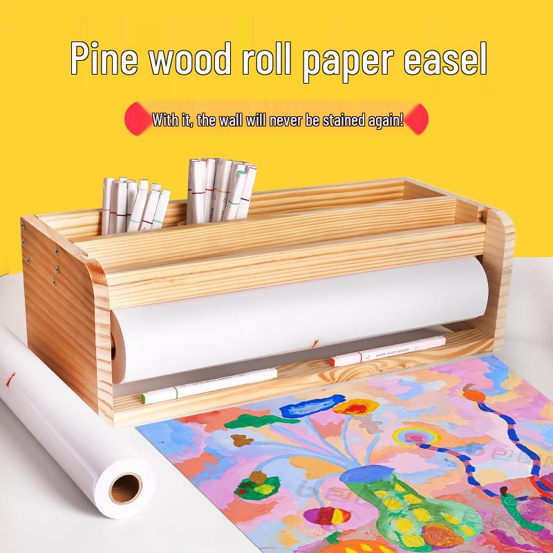Pine Wood Children's Tabletop Art Easel with Long Drawing Paper Roll — tüm dünyaya ücretsiz teslimat ile online ürün satın alın!