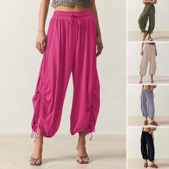 Women Bloomers High-Drape Side Shirring Wide Leg Pants with Elastic Waistband Adjustable Drawstring Pure Color Casual — tüm dünyaya ücretsiz teslimat ile online ürün satın alın!