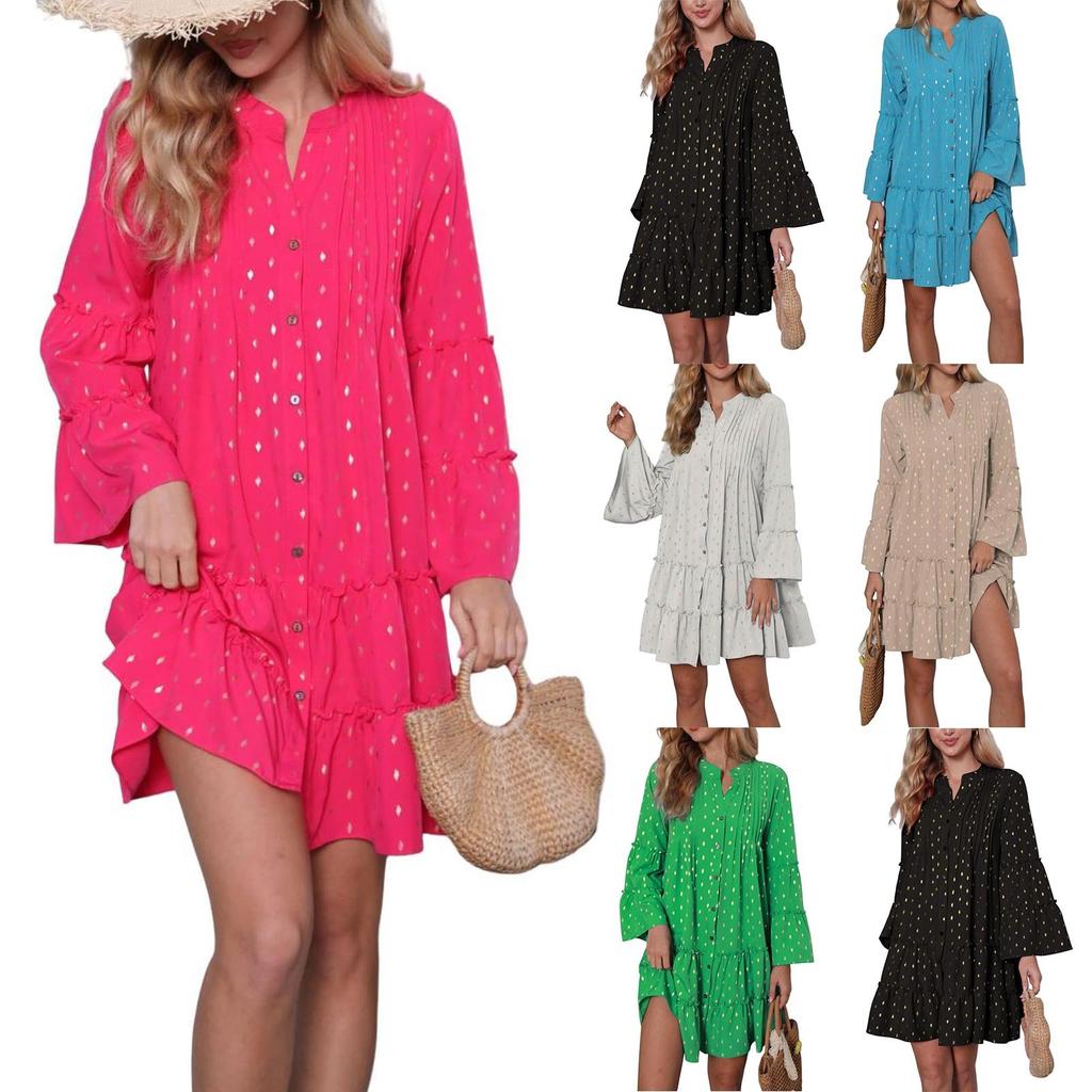 Kadın Elbiseleri Damgalı Kabartmalı Pileli Alevli Kol Bol Uzun Kollu Elbiseler