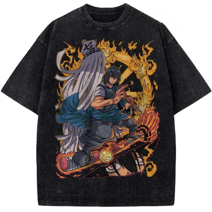 Shinmon Benimaru Print T-shirt Fire Force Anime Clothing Men Women Cotton Tshirts Vintage Washed Tee Harajuku Oversized T Shirt
