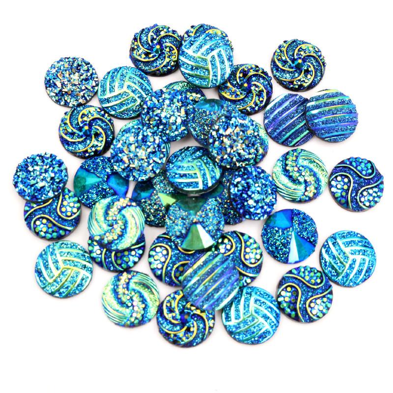 New Fashion 40pcs 12mm Mix Blue Colors Flower Style Flat back Resin Cabochons Cameo