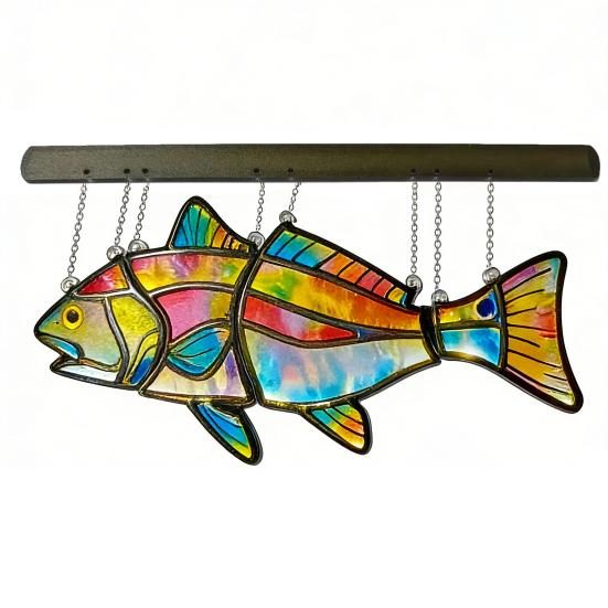 Fish Suncatcher Stained Glass Style Window Hanging Panel Colorful Fish Wind Chimes with Chain for Indoor Outdoor Home Garden Decor Gifts for Fish