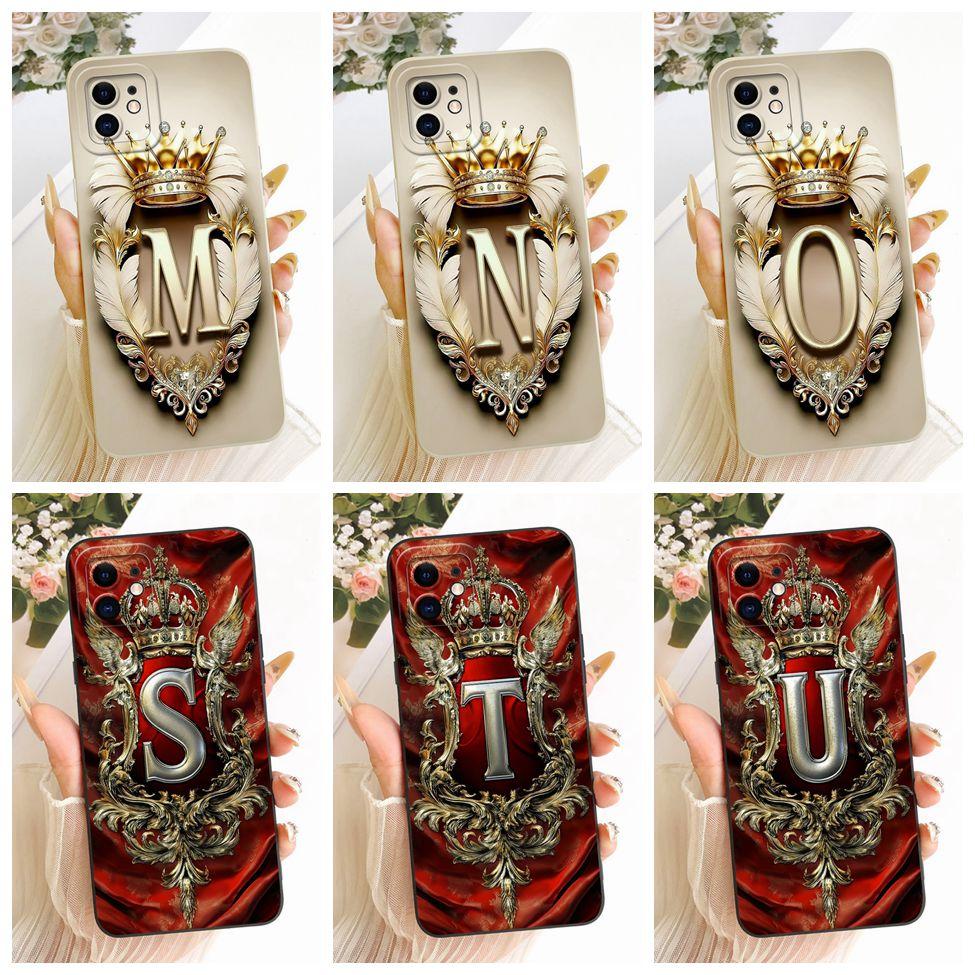 6.1'' For iPhone 11 Case Silicone Fashion Crown Luxury A-Z Letters 2D Flat Pattern Soft Casing For A2221 A2111 A2223 Cover