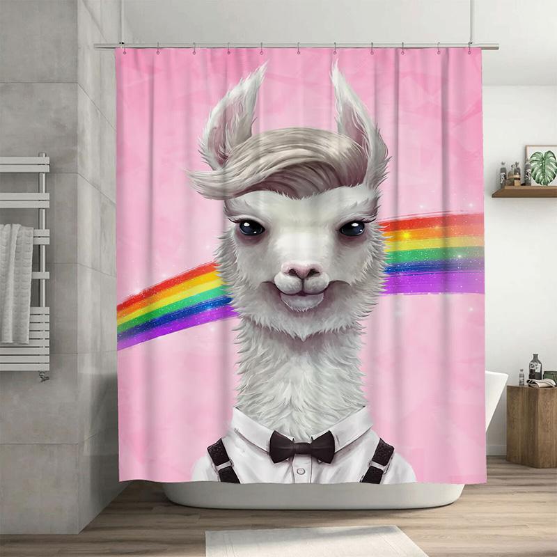 Rainbow Llama Shower Curtain Pink Background With White Furry Character Costume Shirt Bow Tie Design For Bathroom Decorations — tüm dünyaya ücretsiz teslimat ile online ürün satın alın!