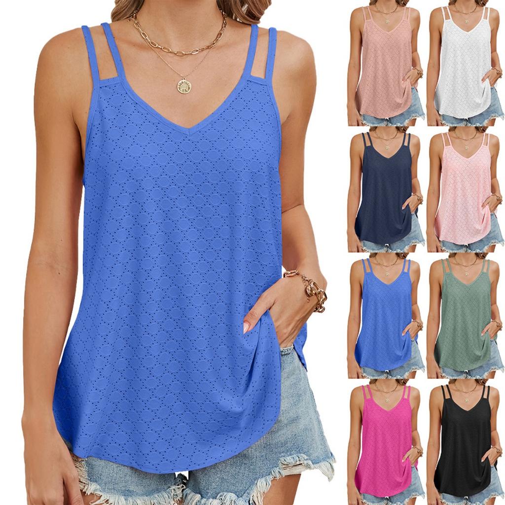 Spring Summer New Solid Color V-neck Camisole Loose T-shirt Top for Amazon Europe America Cross-border Trade Ready To Ship