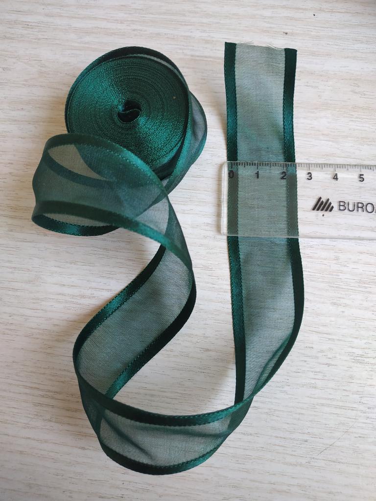 Стрічка з органзи з атласним краєм, 5 м. ✈️Доставка замовлення - 21день. 👩🔬Колір: темно-зелений. Стрічка не тягнеться, і не надто щільна. Тримає форму та зроблена дуже акуратно. Сторонній запах відсутній. Ширина: 2,5см. Атласний край 0,4см. Довжина отриманого відрізку: 4,95м. По формі і кольору отримана стрічка відповідає фото продавця. Товар якісний. 💳Ціна на день придбання 33,3грн. 🙂Сподіваюсь, що даний відгук був Вам корисний❤️