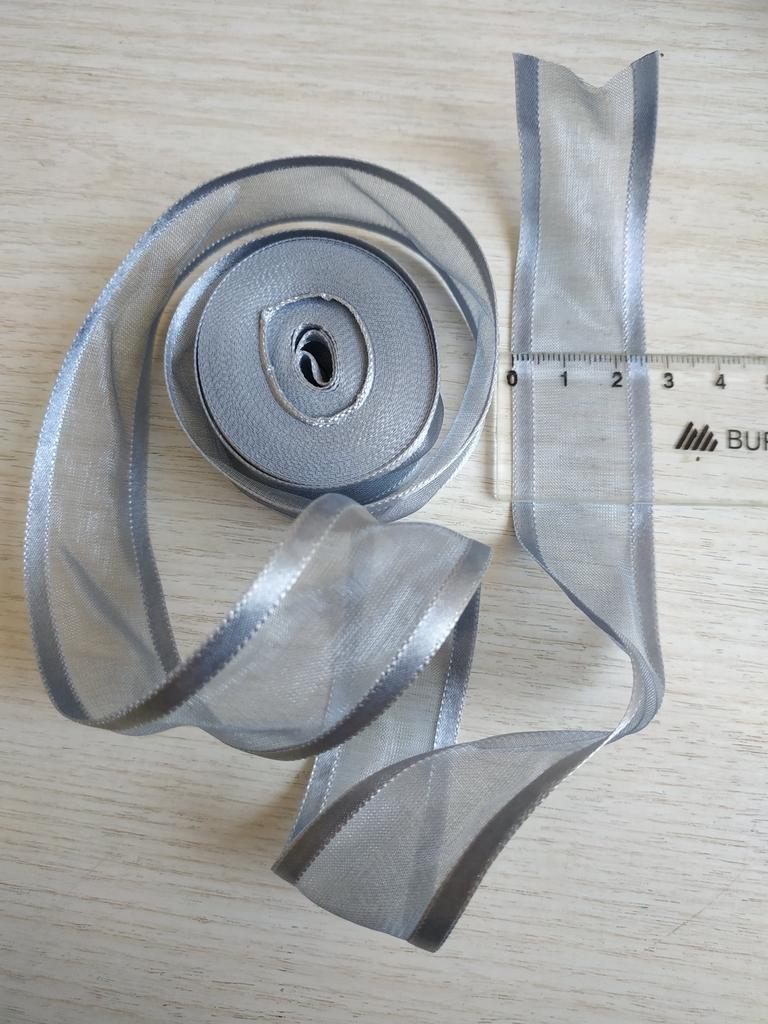 Стрічка з органзи з атласним краєм, 5 м. ✈️Доставка замовлення - 21день. 👩🔬Колір: сіро-срібний. Стрічка не тягнеться, і не надто щільна. Тримає форму та зроблена дуже акуратно. Сторонній запах відсутній. Ширина: 2,5см. Атласний край 0,4см. Довжина отриманого відрізку: 5,05м. ✅По формі, кількості і кольору отримана стрічка повністю відповідає фото і опису продавця. Товар якісний. 💳Ціна на день придбання 32,4грн. 🙂Сподіваюсь, що даний відгук був Вам корисний❤️