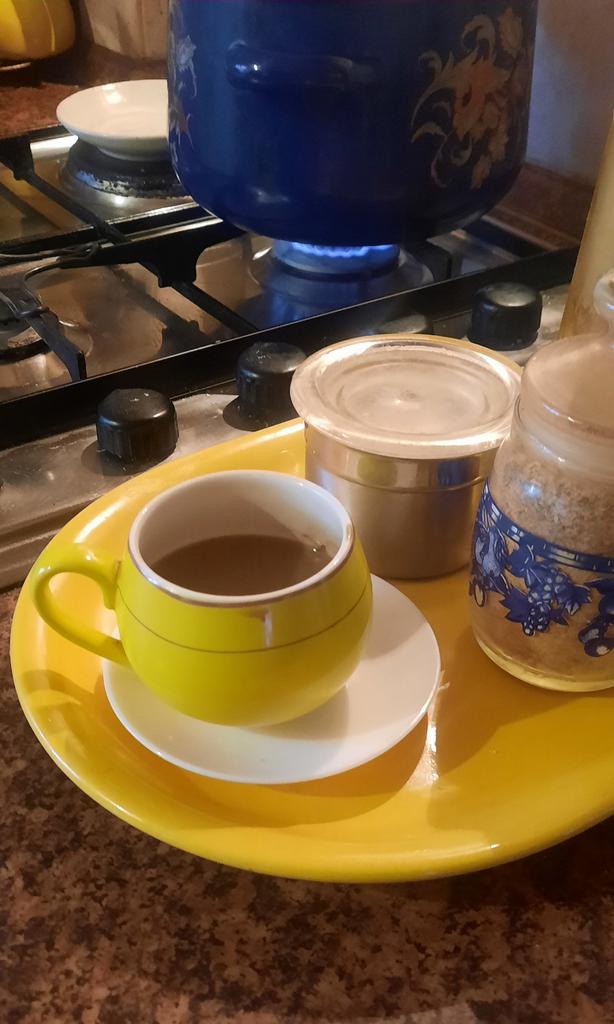 У меня есть такая на 6 чашек, теперь будет на 1 чашку... Выходит 1 чашка кофе (с молоком) около 150 мг...