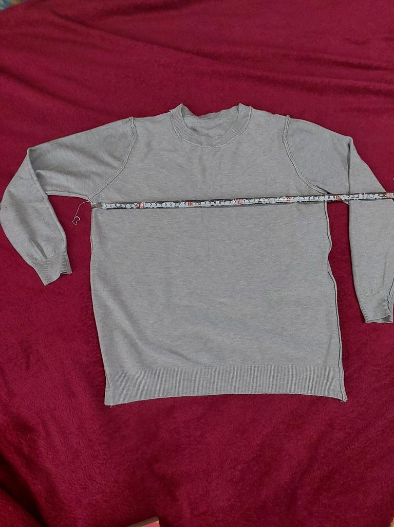 Замовляли розмір 3XL, але насправді розмір приблизно відповідає розміру M або L. На пуловері не вказаний ні розмір, ні склад. Колір також відрізняється - на фото гарний світло-сірий, а прийшов якийсь брудно-сірий. Не рекомендую
