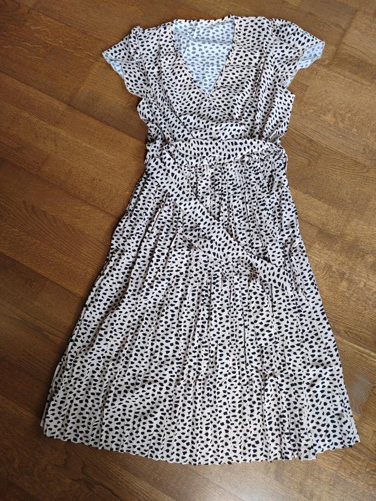 Суконка хорошої якості. Пошиття бездоганне. Тканина шовковиста,м'яка, дуже приємна на дотик,трохи електризується. У мене чомусь не плісе. Сподобався колір - він бежевий, дуже гарного відтінку. Фасон чудовий. Розмір S підійшов. Мої параметри - плечі 39 см, груди 88 см, талія 74 см, стегна 96 см, ріст 159 см. Сукнею задоволена. Щей отримала подаруночок від продавця - прекрасну гумку для волосся. Дякую продавцеві ❤️ і дякую Joom ❤️.