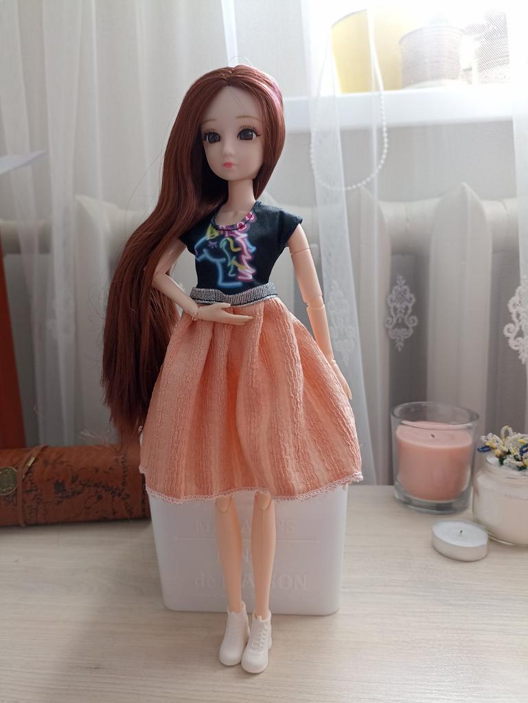Сукня чудова. Тканина - поліестер.Дуже якісно зроблена. Приємні кольори. Розмір відповідає розмірами Барбі. Гарно запаковане. Доставка швидка.