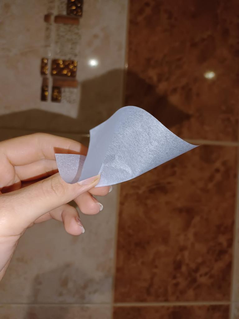 на дотик як пергамент бумага для духовки, тільки тоньше. пахне лавандою, звичайним милом для рук. спробувала, якось незрозуміло.. і нічого не вбирає і запаху лаванди на шкірі не залишає.