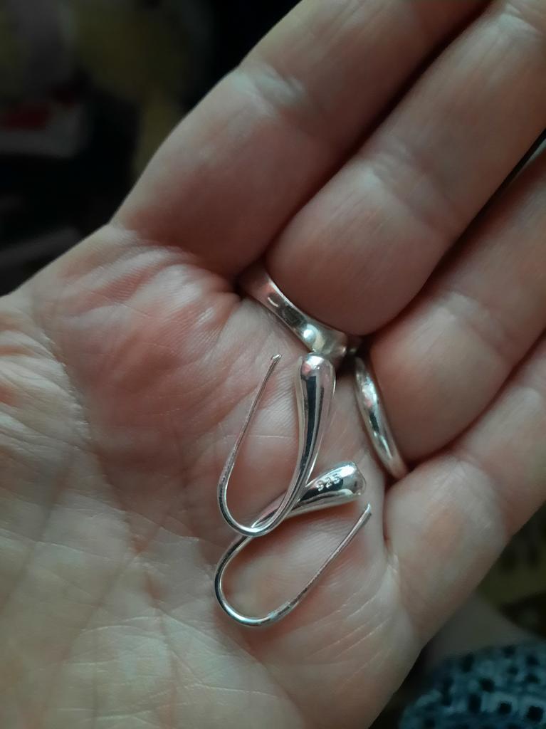 Сережки, перстень і браслет в наборі дивляться. А от цепочка і кулон дрібнуваті. І цепочка до набору пасувала б трохи довша. Вона тонша ніж у браслеті.