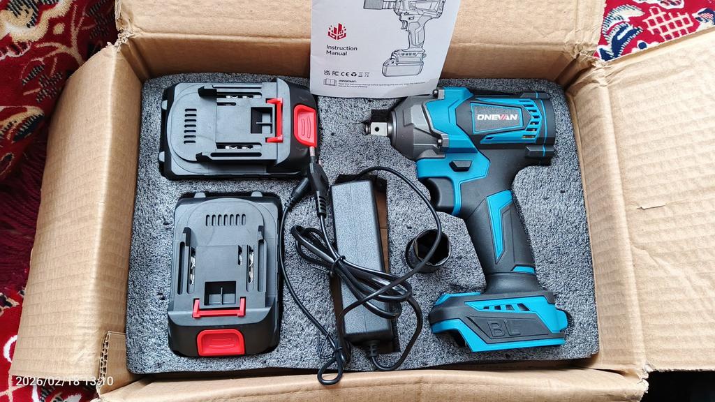 Замовив 01.02.26 отримав 18.02.26 Вінниця. В роботі ще не перевіряв. На перший погляд виготовлений якісно. Вага гайковерта 1.2 кг. Акумулятора 0.537 кг. В комплекті зарядний пристрій та ударна головка на 21 мм. На днях перевірю в роботі та добавлю відгук.