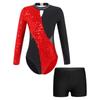 Купальник із блискучим декором із блискучими паєтками з довгими рукавами та шортами Одяг для катання на ковзанах для танцювальної гімнастики