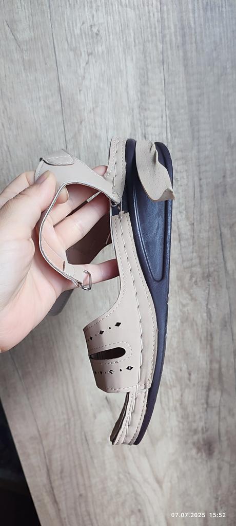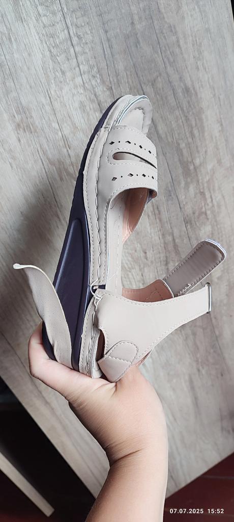Босоніжки легкі, симпатичні. Почитала відгуки, в мене 37, заказала 38, на один розмір більше, бо люди пишуть, що маломірки. Вийшло, що великі. Треба було заказати розмір у розмір. Віддам доньці. А так, гарні. Дякую джумі. Доставка три неділі.