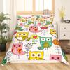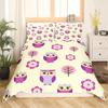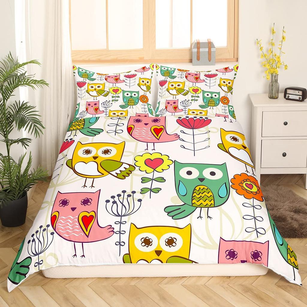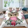 Cartoon Owl King Queen Duvet Cover Gray Cute Animal Bedding Set Pink Orange Grey Flowers Comforter Cover Polyester Quilt Cover