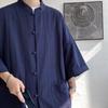 Чоловіча сорочка в японському стилі, ретро, з бавовни та льону, літні рукави з п'ятьма точками, великі розміри, китайський національний тренд