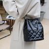 2025 New High-end Leather Small Fragrant Style Grid Chain Bucket Bag Retro Versatile Single Shoulder Crossbody Women's Bag Trend