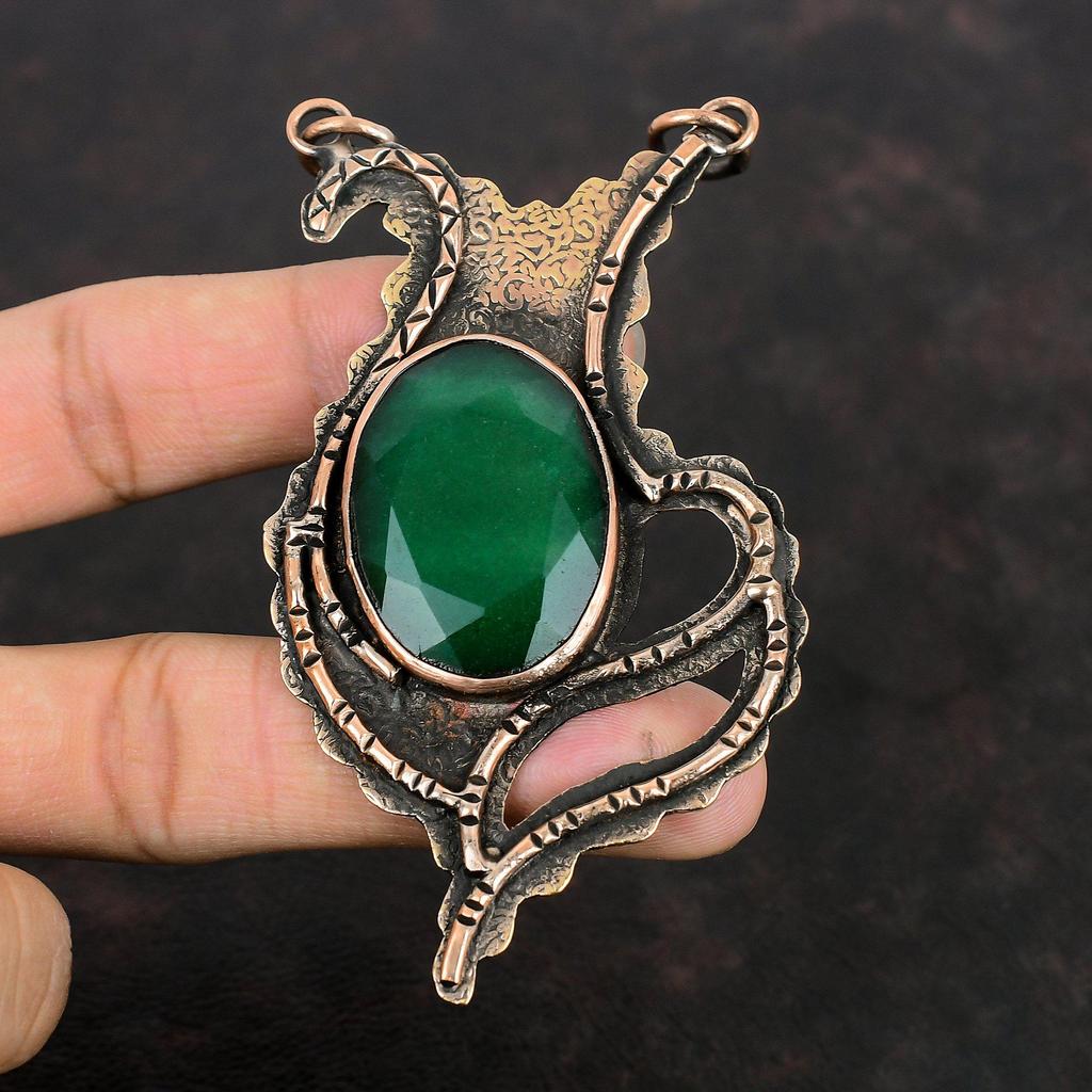 Кулон із гранованим замбійським смарагдом. Мідний кулон. Елегантний кулон. Мідні ювелірні вироби ручної роботи. Кулон із дорогоцінним камінням. Подарунок для неї. Ювелірні вироби із замбійського смарагду. — купити товар онлайн з безкоштовною доставкою по всьому світу!