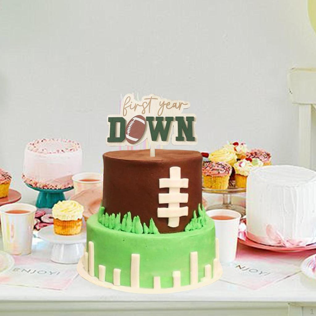 First Year Down Wood Cake Topper, Football 1ST Birthday Party Decoration,DIY Photo Props,Birthday