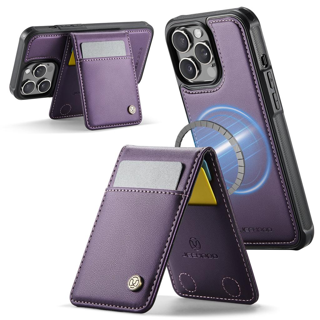 For iPhone 14 Pro Leather Back Cover Compatible with MagSafe JEEHOOD J06 Phone Case with Card Bag RFID Blocking — купити товар онлайн з безкоштовною доставкою по всьому світу!