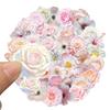 50 Transparent INS Pink Flower Stickers, Waterproof Transparent PET Handbook Material Decorative Guitar