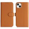 For iPhone 13 mini Stand Case Litchi Texture Genuine Cow Leather Wallet Phone Cover RFID Blocking