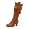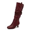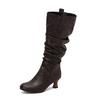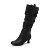 Модні Сексуальні Жіночі Плісовані Ботфорти Високі до Коліна Гострий Носок Підбори-Шпильки Застібка-Блискавка Жіночі Високі Чоботи Жіноче Взуття 34-50 Осінь Зима
