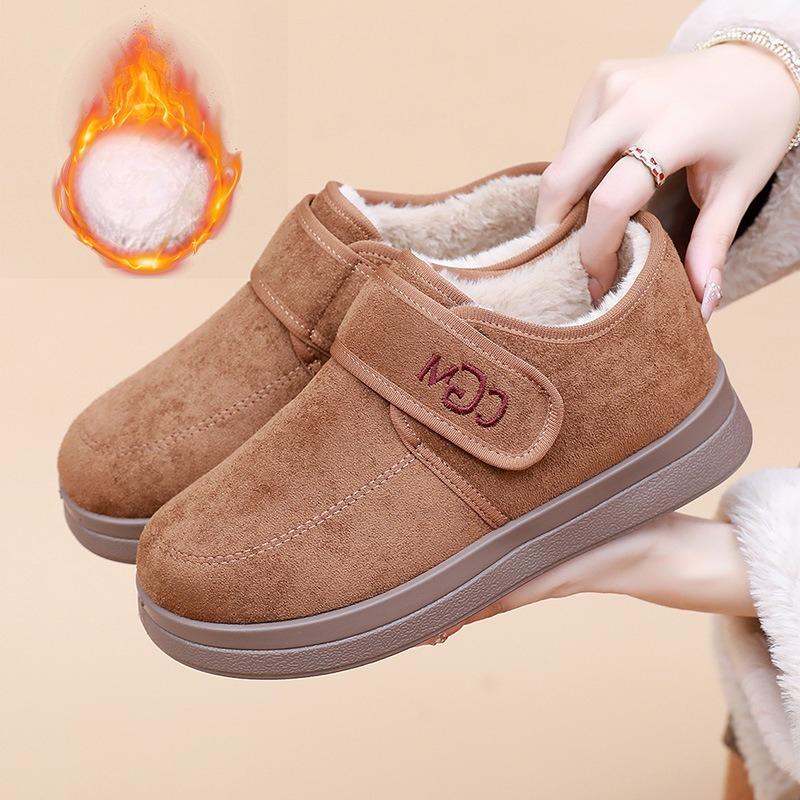 Жіночі великого розміру з м'якою підошвою, зі штрипкою на одну ногу, зимові теплі хутряні черевики, утеплені підкладкою, до щиколотки, протиковзкі, для піших прогулянок, спортивні, бавовняні черевики