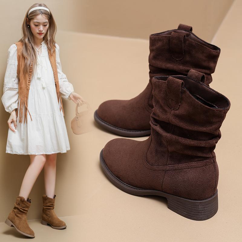 Модні західні черевики на підборах, жіночі модні черевики до середини ікри на масивних підборах, жіноче весняно-осіннє взуття, однотонні ретро боти — купити товар онлайн з безкоштовною доставкою по всьому світу!
