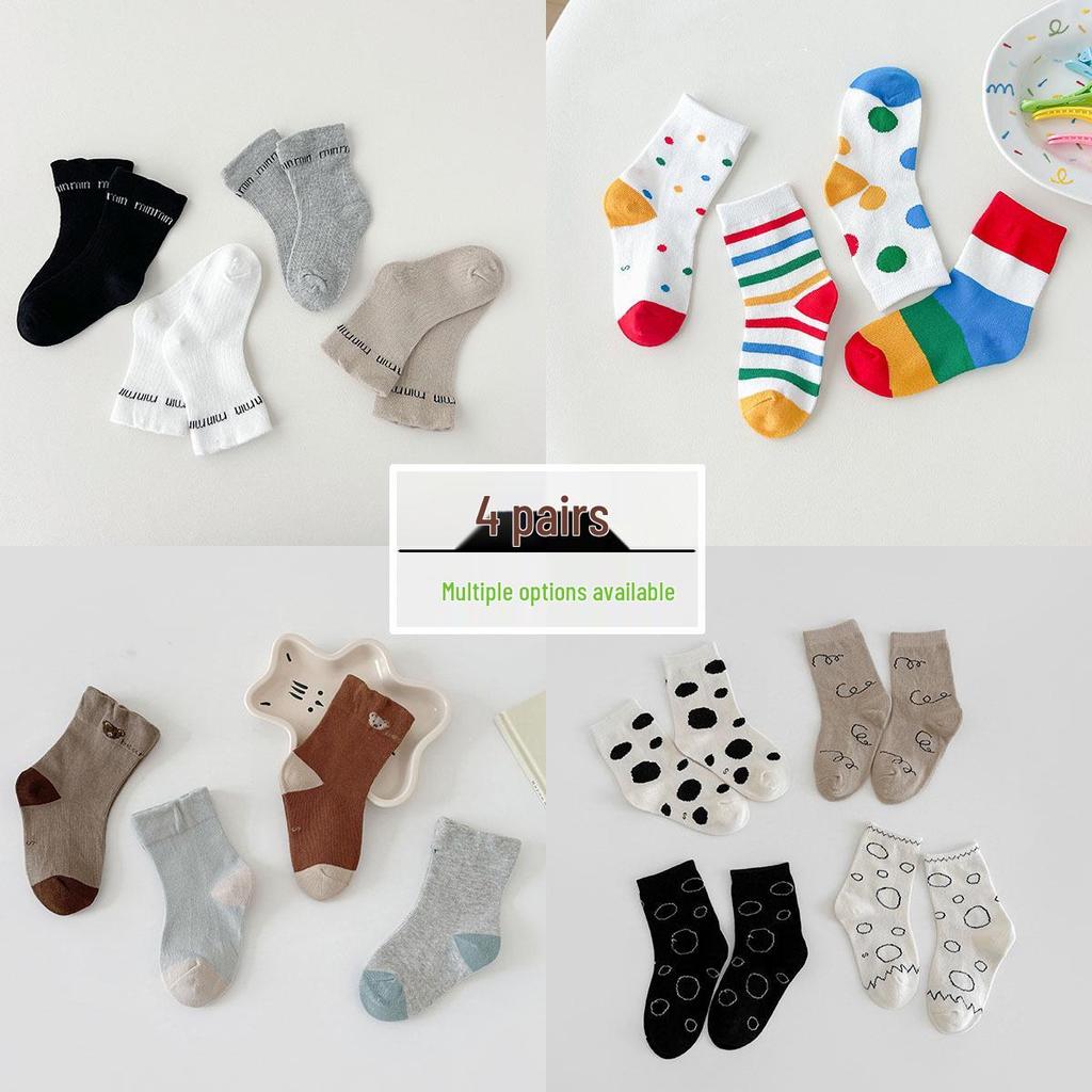Дитячі осінні шкарпетки до середини гомілки з мультяшними горошками - Універсальний корейський стиль для хлопчиків та дівчаток