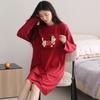 Жіноча бавовняна нічна сорочка середньої довжини з довгим рукавом у милому стилі для осені — купити товар онлайн з безкоштовною доставкою по всьому світу!