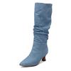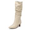 Retro Pleats Thigh High Boots for Women Autumn Thick Heeled Pointed Toe Cowboy Boots Woman Slip On Western Long Botas Mujer — купити товар онлайн з безкоштовною доставкою по всьому світу!