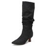 Retro Pleats Thigh High Boots for Women Autumn Thick Heeled Pointed Toe Cowboy Boots Woman Slip On Western Long Botas Mujer