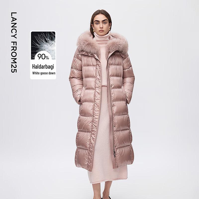 Куртка пухова Langzi Huorduobaji з білого гусячого пуху з коміром з єнота — купити товар онлайн з безкоштовною доставкою по всьому світу!