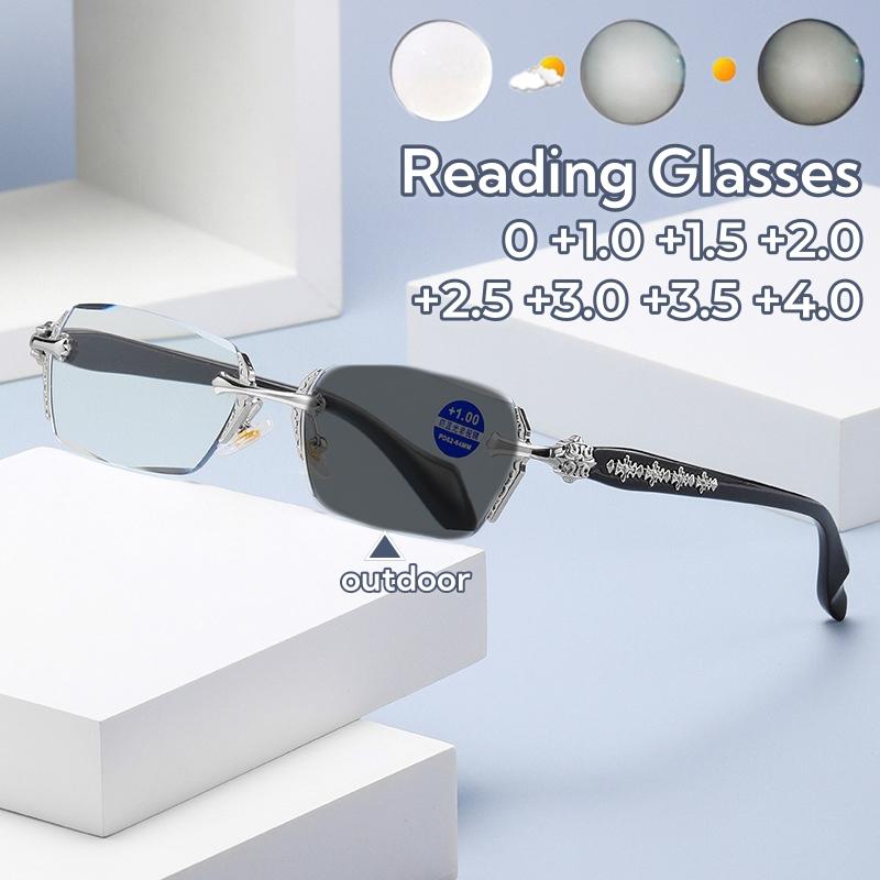 Фотохромні окуляри високої чіткості Винтажні Безкаркасні Зміна кольору Окуляри для читання Обрізаний край Захист від синього світла Окуляри для пресбіопії — купити товар онлайн з безкоштовною доставкою по всьому світу!