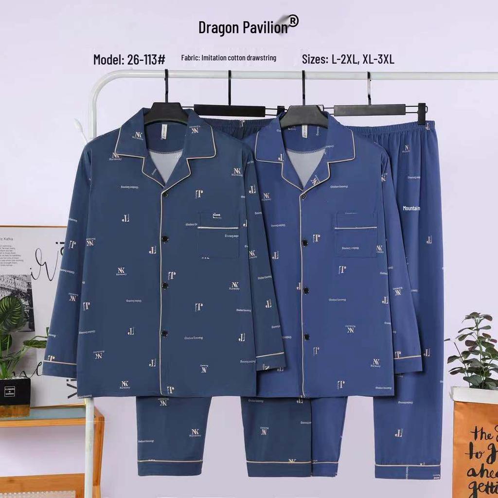 Dragon Pavilion Four Seasons Men's Pajama Set: Soft Lycra, Turn-Down Collar, Long Sleeve Cardigan, Long Pants, Loose Fit Homewear — купити товар онлайн з безкоштовною доставкою по всьому світу!