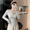 Жіночий топ-henley з довгим рукавом для йоги на осінь та зиму - Базовий шар, Повсякденний, Обтислий одяг для бігу та тренувань