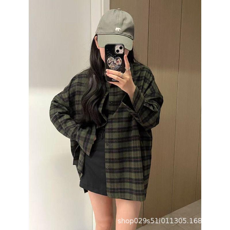 Women's Retro Hong Kong Plaid Shirt Jacket – Autumn Lightweight, Loose-Fit Outerwear