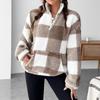 2025 Autumn and Winter Fashionable Short Plaid Half-open Collar Plush Sweatshirt for Women